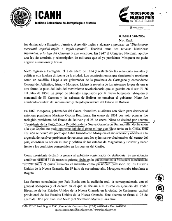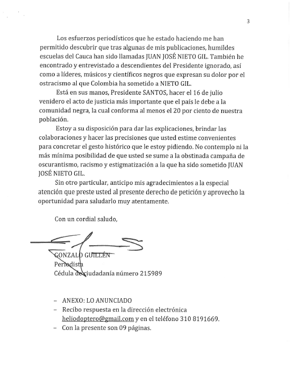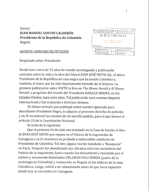 - Reconocimiento de JUAN JOSE NIETO GIL como el primer presidente afrodescendiente de Colombia por parte de la Presidencia de la República, en agosto de 2018.