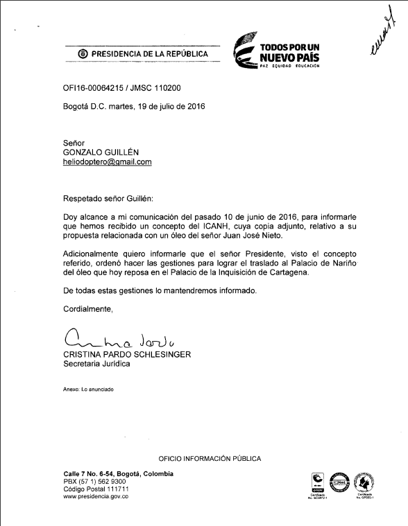 ACCIONES LEGALES ADELANTADAS PARA EL RECONOCIMIENTO DE JUAN JOSE NIETO GIL COMO PRESIDENTE DE COLOMBIA.
